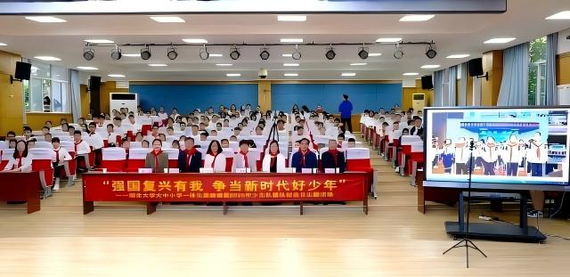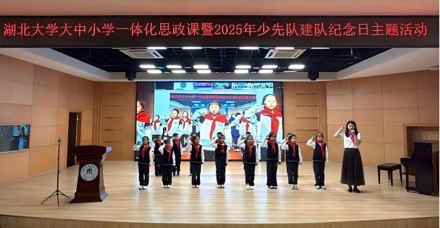10月13日,在湖北大學附屬中學禮堂,舉行了“強國復興有我 爭當新時代好少年”大中小學一體化思政課暨2025年少先隊建隊紀念日主題活動。活動由湖北大學師范學院、湖北大學附屬中學、湖北大學附屬小學和湖北大學附屬雙河實驗學校聯合舉辦,旨在引導廣大青少年在歷史的回響中汲取力量,在莊嚴的儀式中銘記責任。