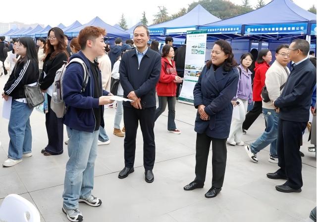 10月16日,由陜西省教育廳主辦,西安財經大學承辦的陜西省2026屆普通高校財經管理類畢業生聯盟招聘會暨全國普通高校畢業生商貿服務與生活消費行業招聘會(陜西專場),在西安財經大學長安校區舉辦。西安財經大學校領導和省教育廳學生處二級調研員白煬到現場指導調研。各學院就業工作領導小組組長、副組長,學工辦主任及畢業班輔導員在現場積極動員畢業生參會求職,為學生精準推薦就業崗位。