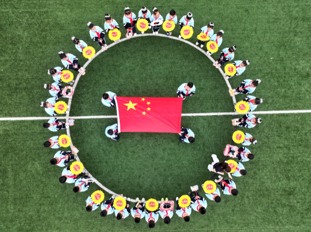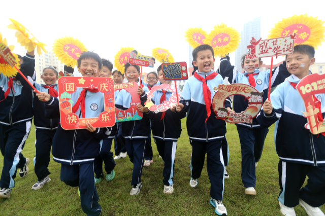 9月29日,江蘇省連云港市院前小學舉行“祝福祖國 喜迎國慶”主題教育活動,慶祝新中國成立76周年。中國教育報-中國教育新聞網通訊員 王春 劉艷 攝