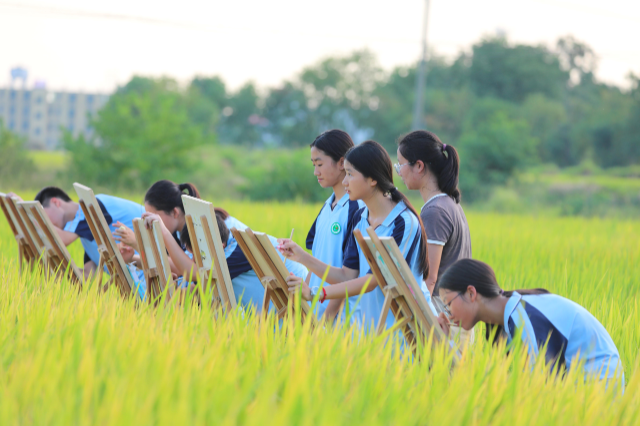 學生正在稻田寫生,描繪秋日田園“豐”景,盡享戶外大課間的樂趣。通訊員 鄧和平 攝