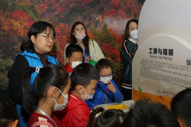 活動現場,北京林業大學與中國科技館分別帶來《枯枝落葉變形記》《鉆石失竊案》科普劇,通過沉浸式的劇情,講述城鎮園林綠化廢棄物處置利用過程的科學原理和生態價值以及花時鐘的奧秘。中國林科院資源環境與信息所副所長張懷清和林木遺傳育種全國重點實驗室副主任樊瑋分別就展品“生命有多長”“土壤與植物”進行志愿講解,帶領觀眾認識大自然中的生命,了解不同土壤類型與植物之間的關系。