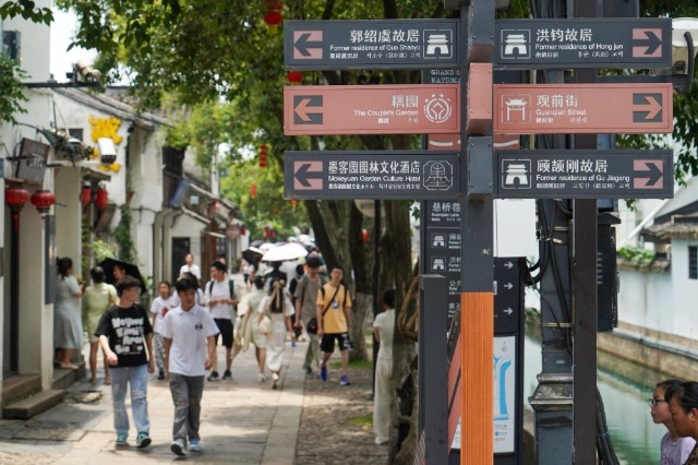 游客在蘇州平江歷史文化街區休閑游玩(2023年7月6日攝)。新華社記者 李博 攝