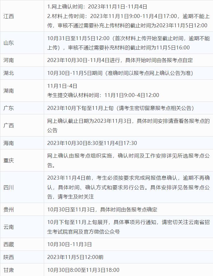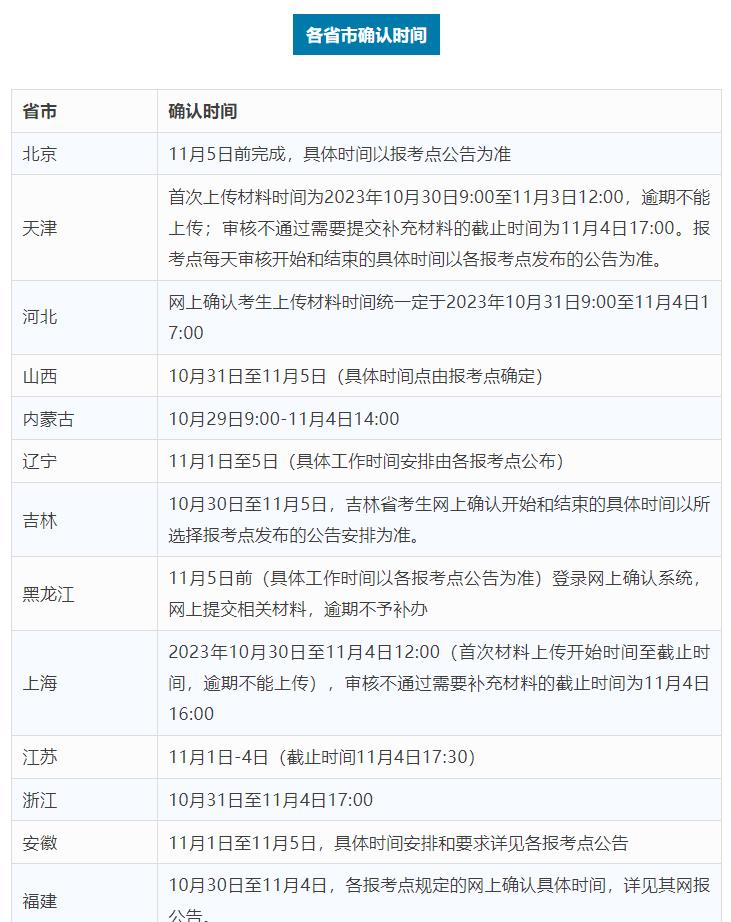 所有考生(不含推免生)均應(yīng)當(dāng)在規(guī)定時(shí)間內(nèi)在網(wǎng)上核對(duì)并確認(rèn)其網(wǎng)上報(bào)名信息,逾期不再補(bǔ)辦。網(wǎng)上確認(rèn)時(shí)間由各省級(jí)教育招生考試機(jī)構(gòu)根據(jù)國(guó)家招生工作安排和本地區(qū)報(bào)考組織情況自行確定和公布。