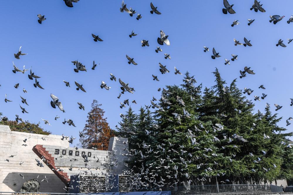 2022年12月13日,南京大屠殺死難者國家公祭儀式現場放飛和平鴿。新華社記者李博 攝