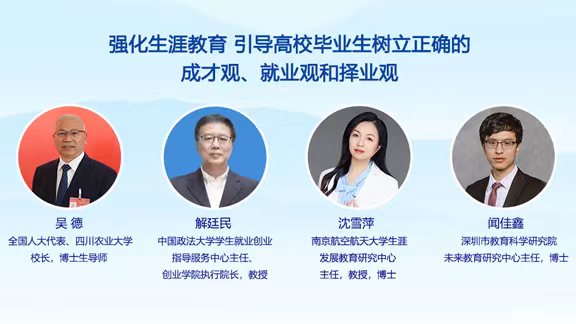 吳德:以四川農(nóng)業(yè)大學(xué)為例,學(xué)校將就業(yè)教育、就業(yè)引導(dǎo)納入“三全育人”重要內(nèi)容,將生涯教育納入人才培養(yǎng)全過程。大一階段通過一人一冊的《新生指南》、職業(yè)生涯規(guī)劃與就業(yè)指導(dǎo)活動月系列活動,開啟學(xué)生職業(yè)生涯規(guī)劃和就業(yè)意識;大二、大三階段實施“蓄能培養(yǎng)”,通過《大學(xué)生職業(yè)生涯規(guī)劃》《大學(xué)生就業(yè)指導(dǎo)》課程以及學(xué)生對于專業(yè)課的深入學(xué)習(xí),引導(dǎo)學(xué)生逐步建立科學(xué)就業(yè)觀,提升職業(yè)素養(yǎng);畢業(yè)年級做好“發(fā)力沖刺”,精準(zhǔn)掌握每一位畢業(yè)生的就業(yè)需求,提供個性化就業(yè)指導(dǎo),連續(xù)10年編印《畢業(yè)生就業(yè)指南》等。