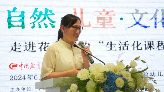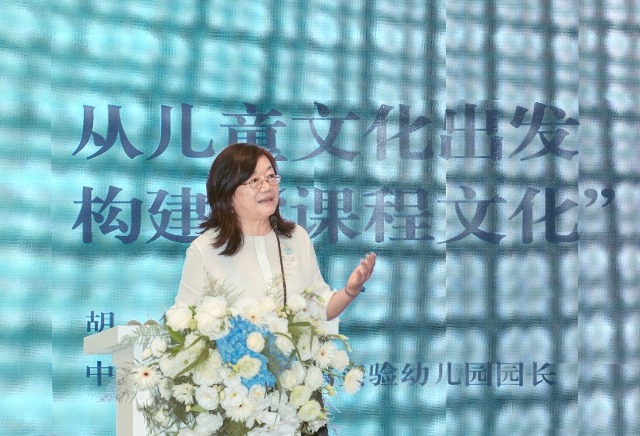 中華女子學(xué)院附屬實(shí)驗(yàn)幼兒園園長胡華作主旨報告,引導(dǎo)與會教師思考如何從兒童出發(fā),構(gòu)建“課程文化的時間與空間”。她指出,兒童的日常生活是兒童文化生成的田野,也是兒童文化研究的起點(diǎn),幼兒園教師要以“螞蟻之眼”看世界,用情感打開通向兒童文化的大門。生活化課程就是尋找兒童文化與社會文化的平衡,構(gòu)建一個表達(dá)兒童自我的空間,在日積月累中形成一定的課程文化。