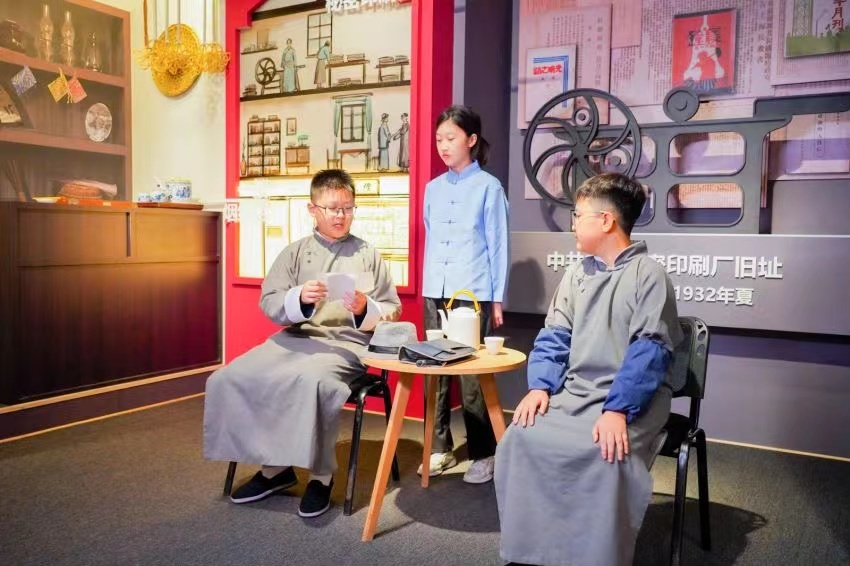 此外,學生們還結合展覽內容與展陳空間,排練了短劇《真理的味道是甜的》《1925年5月30日》與《秘密印刷廠》,以情景短劇的形式呈現歷史,將展廳化為歷史現場,讓學習變得更為生動、立體、深入。