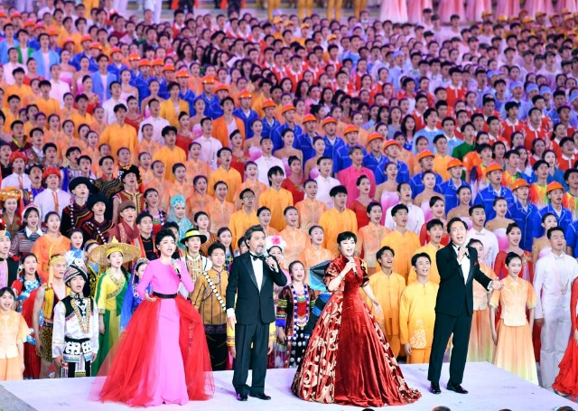 從《黃河大合唱》《北京喜訊到邊寨》等經(jīng)典旋律,到《新的天地》《新征程》等時代華章……透過一方舞臺,山河壯闊的大美圖卷鋪展開來,民族復(fù)興的堅(jiān)定足音鏗鏘回響。