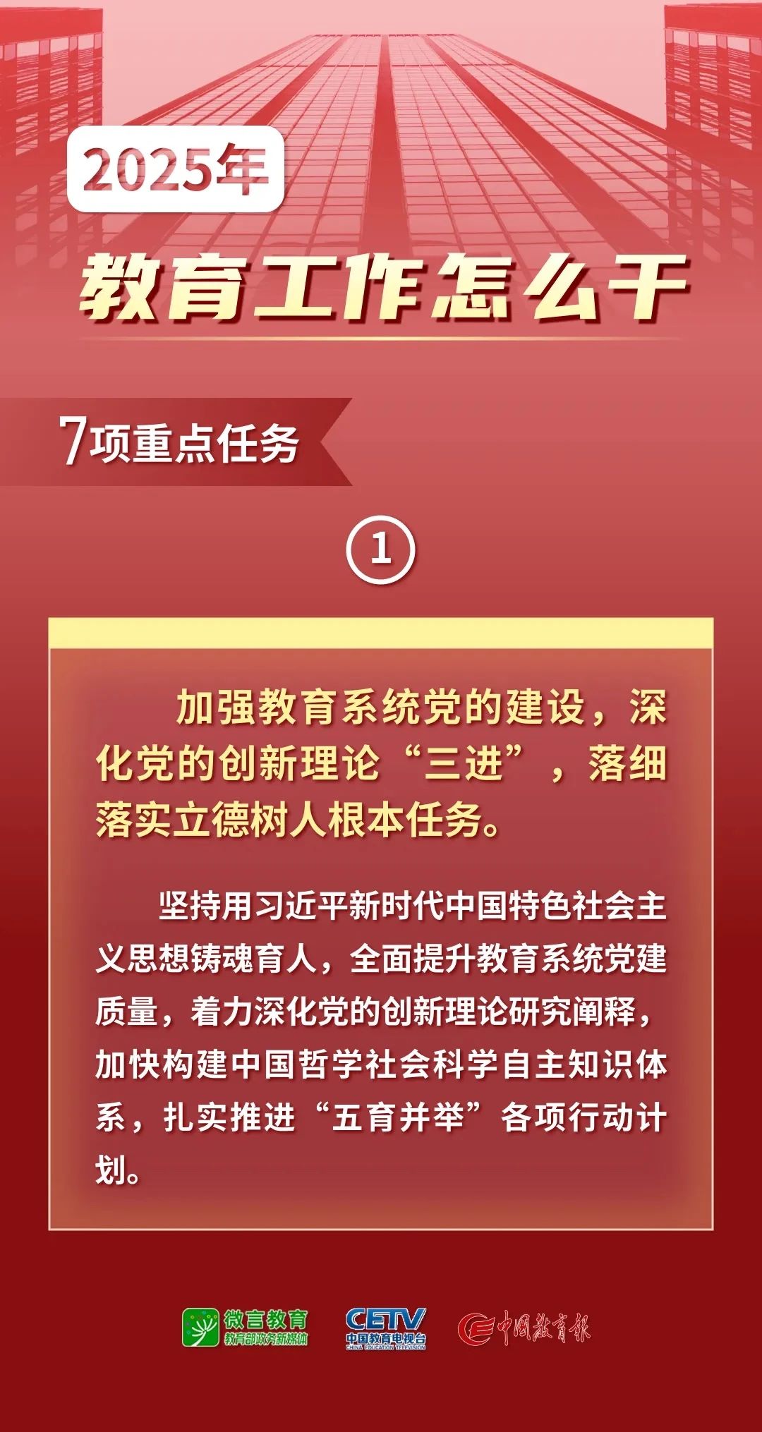 1月9日—10日,2025年全國(guó)教育工作會(huì)議在北京舉行。會(huì)議以習(xí)近平新時(shí)代中國(guó)特色社會(huì)主義思想為指導(dǎo),全面貫徹落實(shí)黨的二十大和二十屆二中、三中全會(huì)精神,深入學(xué)習(xí)貫徹全國(guó)教育大會(huì)精神和習(xí)近平總書記關(guān)于教育的重要論述,總結(jié)工作、分析形勢(shì),統(tǒng)一思想、凝聚共識(shí),圍繞組織實(shí)施教育強(qiáng)國(guó)建設(shè)規(guī)劃綱要,安排布置年度重點(diǎn)任務(wù),確保教育強(qiáng)國(guó)建設(shè)高起點(diǎn)布局、高質(zhì)量推進(jìn)。