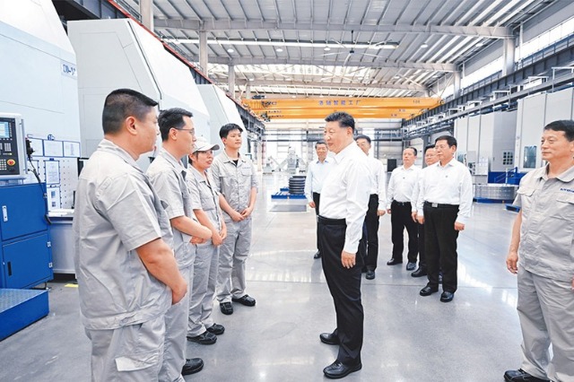 2025年5月19日至20日,中共中央總書記、國家主席、中央軍委主席習近平在河南考察。這是19日下午,習近平在洛陽軸承集團股份有限公司智能工廠考察時,同企業(yè)職工親切交流。新華社記者 燕雁/攝