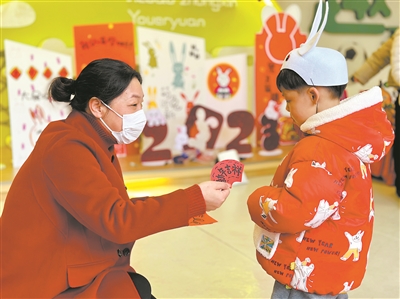 近日,浙江省杭州市富陽區春江街道中心幼兒園開展了以“兔飛萌進·向未來”為主題的開學第一課。幼兒園準備了豐富的開學儀式,孩子們接過園長、老師們親手做的??ê吞鹈勖鄣奶枪瑓⑴c到畫福字、抽福卡、奔跑吧福兔等有趣的活動中。孩子們每完成一項任務就可以得到一枚印章,各種挑戰機會,讓孩子們更團結、更愿意拼搏了。趙柳燕 供圖
