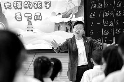 4月26日,在敦煌市西關小學,音樂教師羅莉在課后服務時間指導合唱團的學生練習合唱。