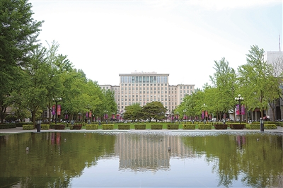 清華大學主樓是由清華大學師生自行設計的校園杰作之一,也是清華校園中規模最宏大的建筑群。主樓正前方的噴泉池在陽光下倒映出主樓的輪廓,實體與倒影相互輝映,彰顯出“自強不息,厚德載物”的沉穩厚重。韓旭 攝
