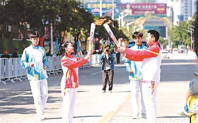 圣火采集成功并點燃火炬后,首日傳遞活動在圣火采集儀式舉辦地北海市進行。據了解,火炬將在廣西14個設區市傳遞,每個設區市傳遞1天,每站傳遞距離約3000米。火炬傳遞路線原則上突出青少年元素,主要選擇體育運動學校、大中小學校、青少年愛國教育基地等場所。