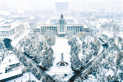 第一場霜雪來臨,如千萬朵白色的茉莉花在空中翩翩起舞,給東北大學(xué)的校園帶來了一場純白的夢。披著銀裝的校園映入眼簾,如同一幅水墨畫。詩情畫意中的白山黑水,共同構(gòu)成了冬日里的校園美景。