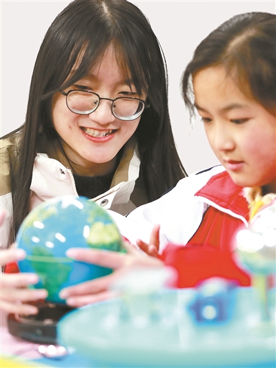 在長安大學援建的商南縣鹿城中學科技小屋里,長安大學支教團成員張雅妮在輔導學生學習“重心與穩度實驗器”的使用方法,孩子們渴求知識的目光觸動著她的心。長安大學已連續12年累計選派138人赴商南縣、留壩縣等地開展支教工作,他們飽含家國情懷,肩負使命擔當,在秦嶺深處綻放別樣芳華。