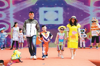 近日,甘肅省蘭州市西固區蘭玻幼兒園的“親子環保時裝秀”激情上演。一個環保袋、一個紙盒、一個小杯子……在幼兒和爸爸媽媽的巧手下被賦予了新的意義,也增進了親子之間的感情?!拔覀兇罅Τ珜Лh保理念,增強幼兒環保意識,陶冶幼兒藝術情操,更好地發揮幼兒的想象力和創造力。”該園園長周文莉說。本報記者 尹曉軍 攝