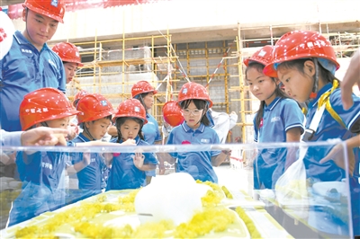 7月10日,“小候鳥”在深圳灣文化廣場(chǎng)項(xiàng)目工地參觀。7月10日至14日,來自中建科工23個(gè)建設(shè)者家庭的32名“小候鳥”在深圳與父母團(tuán)聚,共同參加“建功新時(shí)代 同心護(hù)未來”暑期“小候鳥”夏令營。新華社記者 梁旭 攝