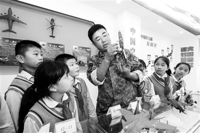 10月18日,在安徽省合肥市廬陽區海棠街道國防知識科普館,廬陽區實驗小學學生在學習國防知識。當日,海棠街道武裝部聯合轄區小學開展“青春如火,國防有我”主題教育活動,通過介紹武器裝備模型、開展國防知識講座等形式,增強青少年國防意識和愛國熱情。