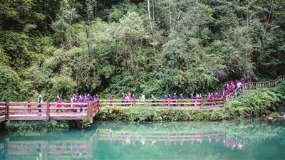 10月23日,貴州省遵義市紅花崗區第二十小學的學生們結束研學有序返回。近年來,遵義市綏陽縣依托雙河洞景區,全力打造生態研學路線,“情景式”“體驗式”的教學和寓教于樂的活動吸引了眾多學子前來觀光研學。 新華社記者 陶亮 攝