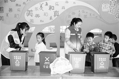 近日,在江蘇省如皋市如城街道東皋幼兒園內,垃圾分類監督員帶著小朋友體驗垃圾分類投放。當日,如皋市城市管理局垃圾分類監督員與如城街道文明實踐員走進東皋幼兒園,通過創意手工變廢為寶、講解資源保護知識、垃圾分類趣味游戲等方式,引導孩子們自覺樹立低碳理念,以實際行動踐行勤儉節約的傳統美德。