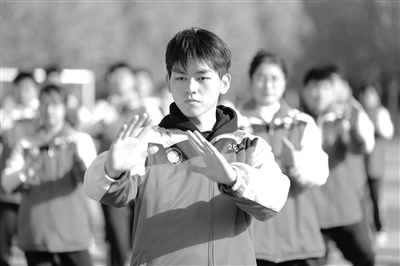11月27日,河南省焦作市溫縣一中高二學生在體育課上練習太極拳。溫縣是太極拳發源地,該縣自2001年起將太極拳引進校園,通過編寫太極拳教材、開設太極拳課程、大課間練習太極拳、定期舉辦師生太極拳比賽等活動,推廣普及太極拳,傳承太極文化。目前,該縣中小學有5萬余名學生練習太極拳,習拳健身成了當地校園里的亮麗風景線。