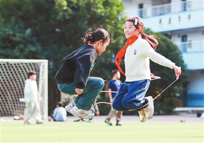 近日,貴州省從江縣剛邊壯族鄉中心小學學生在體育課上跳繩。近年來,該校不斷豐富體育課程,讓學生在形式多樣的體育活動中鍛煉身體、增強體質。