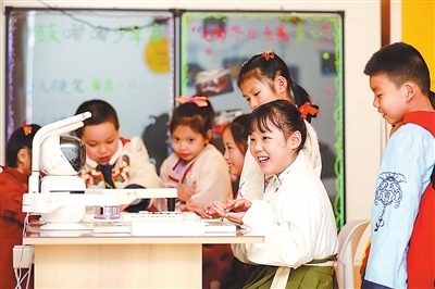 12月1日,福建省福州市鼓樓區(qū)水部街道閩都社區(qū),小朋友們正在與智慧下棋機(jī)器人比拼棋藝。今年來,鼓樓區(qū)根據(jù)群眾“心愿清單”,量身定制“點單式”周末公益課,有效豐富課后服務(wù)內(nèi)容,促進(jìn)青少年全面、健康成長。謝貴明 攝