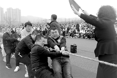 遼寧省莊河市高級中學(xué)教師在進(jìn)行拔河比賽。 學(xué)校供圖