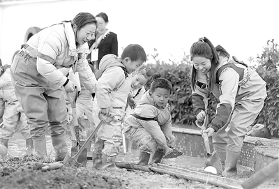 近日,湖北省荊門市名師陳劉芳學前教育工作室團隊在該市東寶區仙居鄉中心幼兒園,與幼兒園教師和孩子們共同進行勞動游戲。今年以來,東寶區充分發揮名師工作室名優教師的示范、引領、輻射作用,持續開展百名名優教師智匯基層“五進五送”活動(即進薄弱學校送優質資源、進學術會堂送理論講座、進教研組送教學指導、進課堂送示范課、進企業送技術),促進優質教育資源共享,推動區域教育均衡發展。