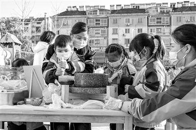 近日,在安徽省蕪湖市繁昌區繁陽鎮春谷幼兒園,家長在指導孩子磨芝麻粉。該幼兒園邀請家長代表和社區志愿者走進校園,與孩子們一起勞動,讓孩子們體驗勞動的樂趣。 肖本祥 攝
