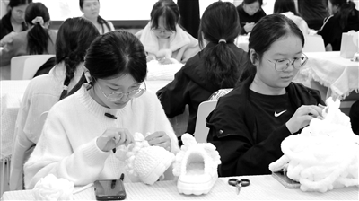 活動現(xiàn)場,學生們圍坐一桌,用精心挑選的絨線認真地鉤針編織。學生王文靜邊織邊說:“塔什庫爾干冬季最低氣溫能達到零下40攝氏度,我得織快一點,盡快把圍巾送給邊疆的孩子們,讓他們能過上一個溫暖的冬天。”
