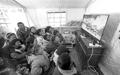 在定日縣長所鄉(xiāng)嘎布村,孩子們在看《西游記》(1月14日攝)。