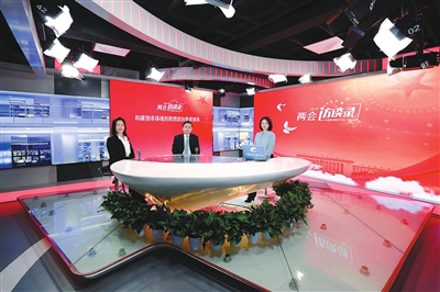 3月7日,全國人大代表、山西財(cái)經(jīng)大學(xué)馬克思主義學(xué)院副教授白琦瑞(左),中國人民大學(xué)習(xí)近平新時(shí)代中國特色社會主義思想研究院院長、馬克思主義學(xué)院教授秦宣(中)做客中國教育報(bào)刊社“兩會訪談錄”演播室。 本報(bào)記者 單藝偉 攝