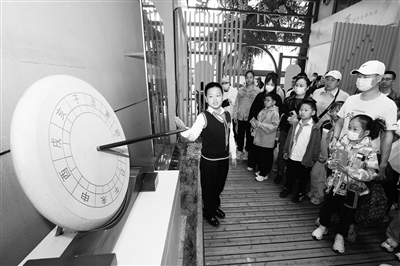 3月23日,在河北省石家莊市氣象局市民開放日活動中,“氣象小講解員”為觀眾講解日晷用途。當日是世界氣象日,各地組織開展豐富的氣象科普活動,普及氣象知識,增強人們對氣象的關注和了解。新華社發(梁子棟 攝)