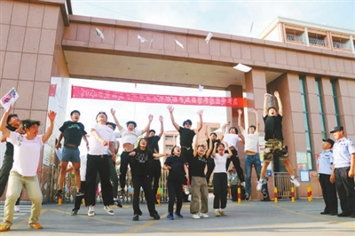 十年磨一劍,備考時的緊張,考試后的激動,都在這一刻盡情釋放……鮮花、擁抱、橫幅、合影,都成為考生難忘的記憶。