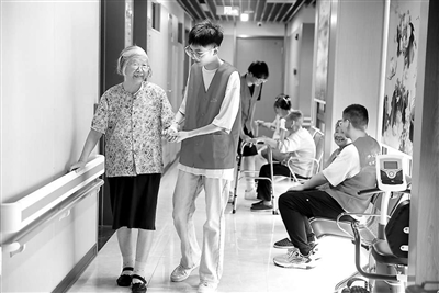近日,在浙江省湖州市德清縣乾元鎮德馨醫康養中心、鎮示范型居家養老服務中心,醫學生志愿者為老人們測量血壓、指導鍛煉身體、講解高溫天養生知識。倪立芳 張彩英 攝