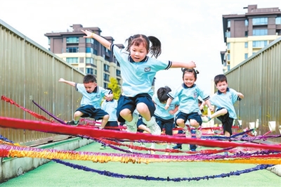 近日,浙江省長(zhǎng)興縣龍山街道中心幼兒園的孩子們?cè)谶M(jìn)行跳皮筋游戲,體驗(yàn)運(yùn)動(dòng)樂(lè)趣。該園開(kāi)展“樂(lè)享運(yùn)動(dòng)”主題活動(dòng),讓孩子們通過(guò)滾“風(fēng)火輪”、擲流星球等特色體育運(yùn)動(dòng),享受運(yùn)動(dòng)帶來(lái)的快樂(lè)。吳拯 攝