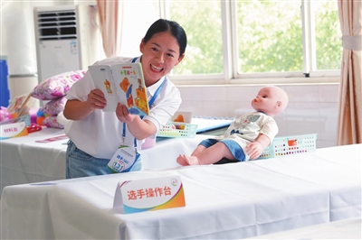 日前,2025年上海市托幼行業職業技能大賽舉行,來自全市的500余名托幼服務一線從業人員同臺競技,旨在進一步提升全市托幼行業從業人員的專業能力和綜合素養。圖為保育員賽項選手技能操作考核現場。本報記者 任朝霞 文 通訊員 尚凱 攝