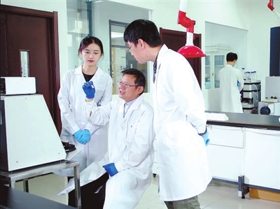 實驗室主任張友明教授(中)在指導學生做實驗。學校供圖