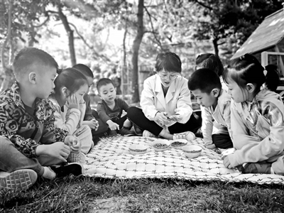 保育員王淑紅原來在服裝廠工作,懂裁剪技術(shù)。一次,教師李敏參加青年教師基本功大賽,需要沙包教具。為讓布料、大小規(guī)格更加合適,王淑紅參與到了教學(xué)現(xiàn)場(chǎng)中來。了解教師的要求后,她連夜縫制了20個(gè)沙包,保證了第二天的教學(xué)活動(dòng)順利完成。就這樣,保育員把傳統(tǒng)手藝變成教育手段,和專任教師一同站在了教學(xué)現(xiàn)場(chǎng)。