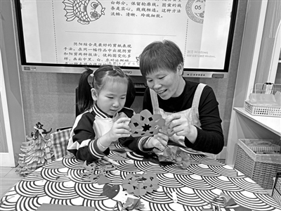 ②保育員教幼兒剪紙。錢豪瓊 供圖