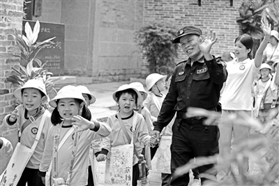 入園時(shí),保安與民警、志愿者一同迎接幼兒。遇到情緒低落的幼兒,他們會(huì)主動(dòng)迎上、抱進(jìn)園內(nèi)。離園時(shí),保安與幼兒互道再見,完成溫馨的離園儀式。他們更是有心的觀察者:一次,有家長(zhǎng)隨手丟果皮,一名幼兒主動(dòng)撿起扔進(jìn)垃圾桶。保安立刻表揚(yáng)幼兒,并倡議家長(zhǎng)“向幼兒學(xué)習(xí)”。